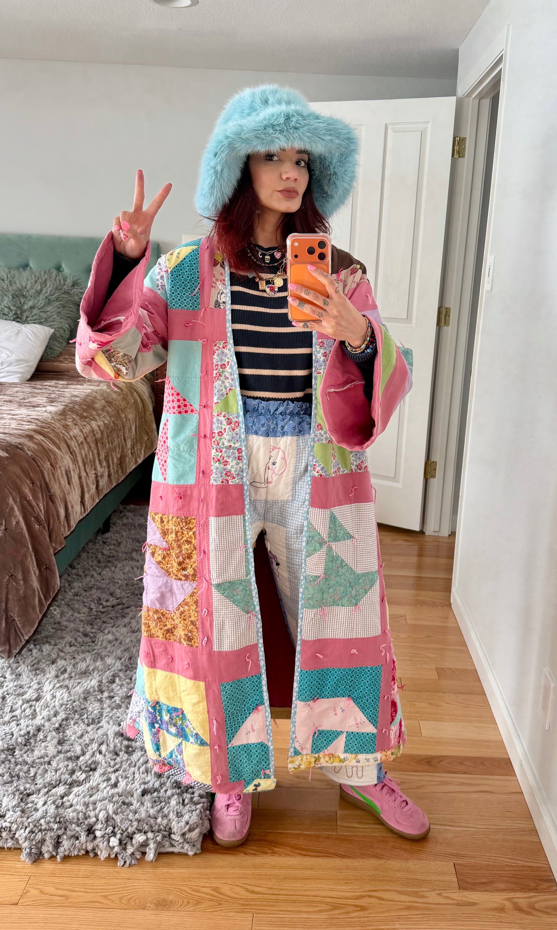 Handmade made quilted long coat